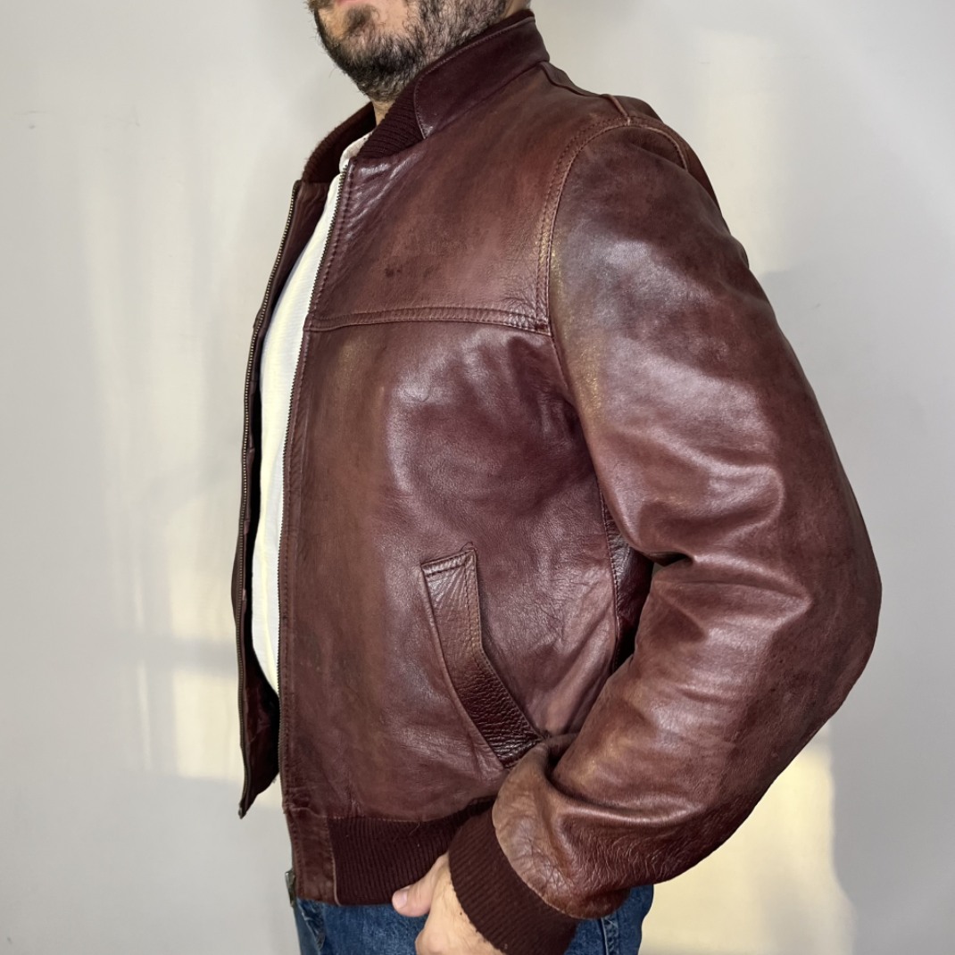 Genuine Leather Bomber in rich burgundy (M men’s)