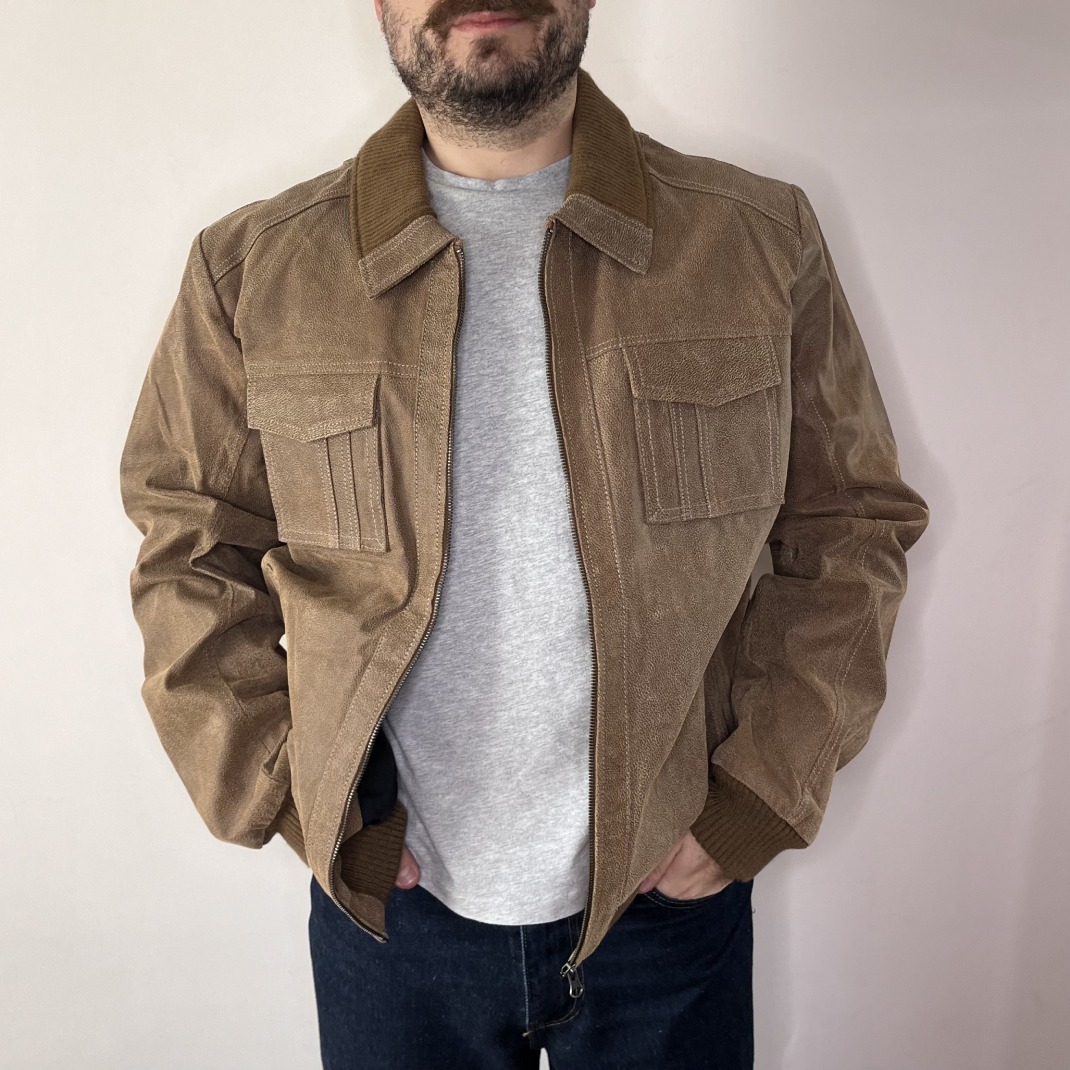 Leather Bomber Jacket (L Men’s, in Light Brown)