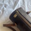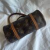 DETAILS: Louis Vuitton Papillon 19 — Monogram coated canvas with natural vachetta leather trim; gold-tone hardware. Barrel (cylindrical) silhouette, compact 19 cm size — one size after the mini, a small Papillon that fits a little more than the essentials. Given with dust bag (a newer original louis vuitton, not the old one.