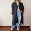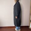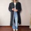 DETAILS: Vintage 100% merino wool coat, featuring a timeless tailored silhouette and soft, heavy-weight wool fabric that drapes beautifully. In dark grey with dark green details.