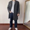 DETAILS: Vintage 70% wool, 10% angora (and 20% polyamide for endurance of the fabric) coat, in grey colour.