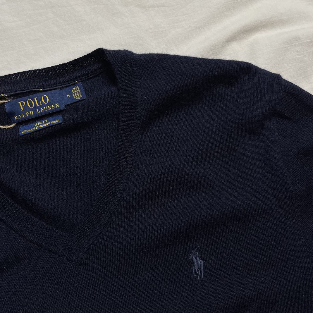 DETAILS: Ralph Lauren 100 % merino wool V sweater. Navy blue colour.