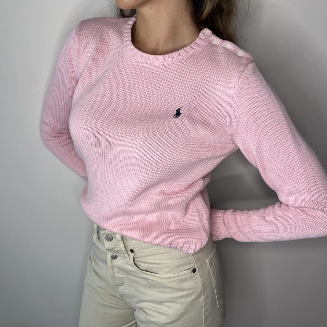 Add a pop of classic charm to your wardrobe with this Ralph Lauren sweater in a soft, bubblegum pink. Made from 100% breathable cotton.