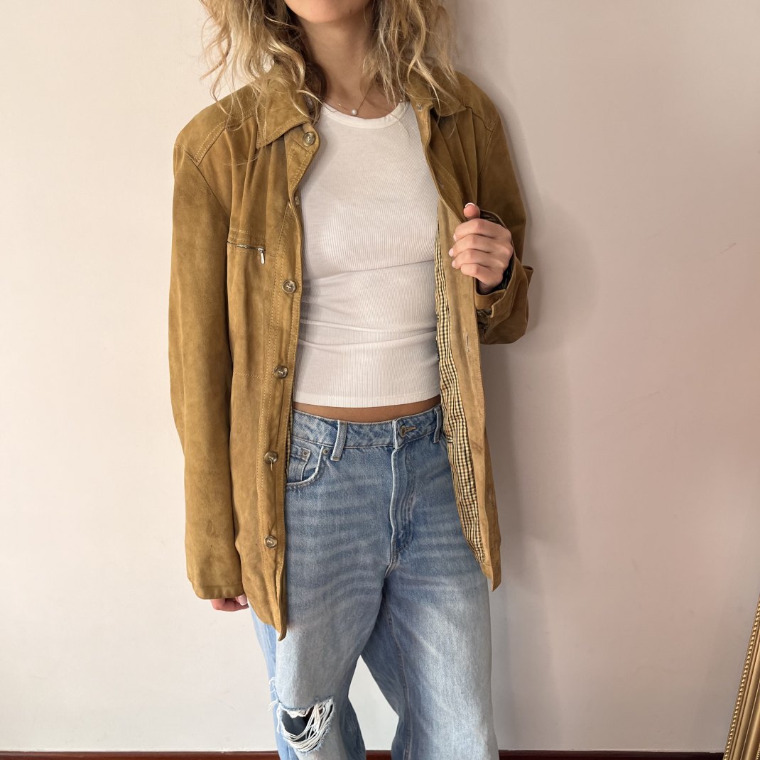 DETAILS: Genuine suede leather jacket in light brown, featuring a soft matte finish and classic straight-cut silhouette. Smooth inner lining for comfort, front zip closure, and side pockets. A timeless and versatile piece that combines casual sophistication with effortless vintage appeal.