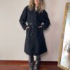 DETAILS: Vintage 100% virgin wool coat, featuring a belt, in dark grey colour.